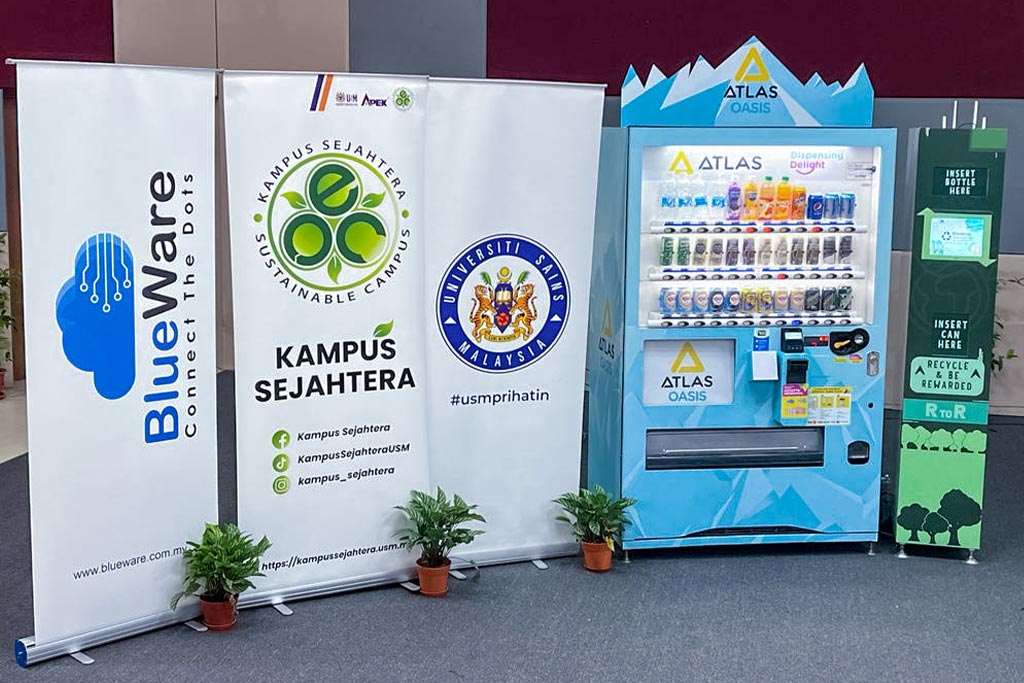 Penang, 29th Jan 2024 – In a significant triumph, students from Universiti Sains Malaysia’s (USM) School of Chemical Engineering won a competition hosted by ATLAS Vending, with Blueware Sdn Bhd turning their winning concept into reality. This groundbreaking idea centres around a Reverse Vending Machine (RVM), seamlessly incorporated into ATLAS vending machines, offering users a sustainable and rewarding recycling experience.